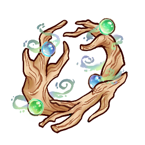 A glowing, mana-infused wreath crafted out of sturdy driftwood and decorated with glittering baubles.